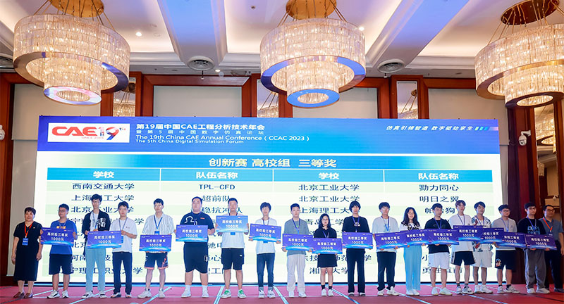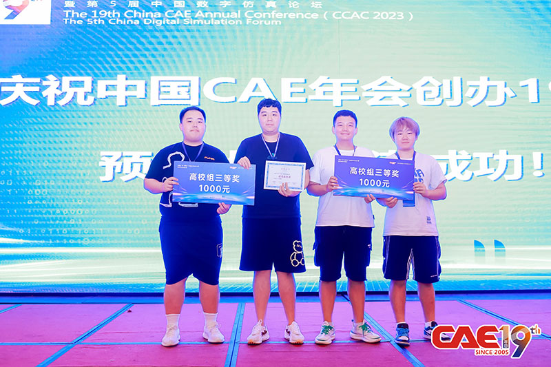 8月18日至20日,在第19届中国CAE工程分析技术年会暨第5届中国数字仿真论坛上,2023年“云道杯”中国数字仿真大赛在福建省厦门市开赛。beat365机电学院派出2支队伍参赛,并全部顺利进入决赛。通过各项测评、考核、答辩和专家组评议等环节,机电学院2支参赛队伍最终荣获高校组全国“三等奖”,并获得奖金2000元。beat365在线唯一官网获得“优秀组织奖”。获奖团队后续可以参加专业组委会组织的产业合作等对接活动。