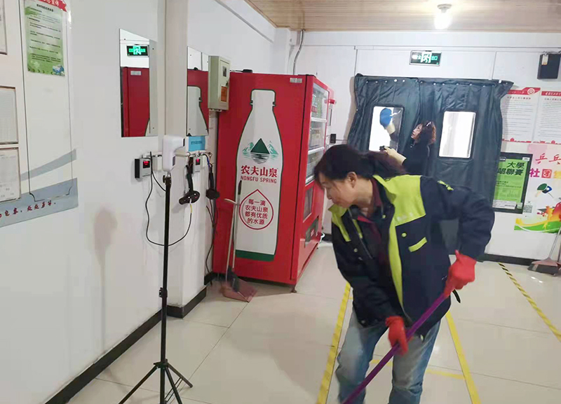 为给广大师生创造一个安全、舒适的公寓生活环境,进一步提高服务质量,公寓管理教师、各宿舍楼宇值班员和保洁员分别对门卫室、大厅、楼道等公共卫生区域进行大扫除,对公寓各楼卫生死角全面清理,公共空间、卫生间进行全覆盖消毒消杀、通风。同时对全部学生寝室内饮水机进行清洗、消毒等各项准备工作。