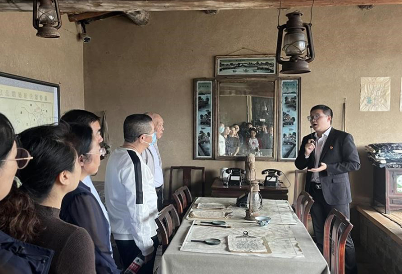 在旧址展厅,跟随讲解员动情地叙述,全体党员认真参观作战室等历史场景。一盏锈蚀的油灯、一张泛白的战略地图、一方简朴的土炕,两台显眼的电报机无声讲述着“小村庄指挥大决战”的革命传奇。通过观看珍贵的辽沈战役影像资料,同志们仿佛重回战火纷飞的年代,深刻体会到老一辈革命家运筹帷幄、决胜千里的卓越智慧和战士们不畏牺牲、奋勇向前的革命精神。