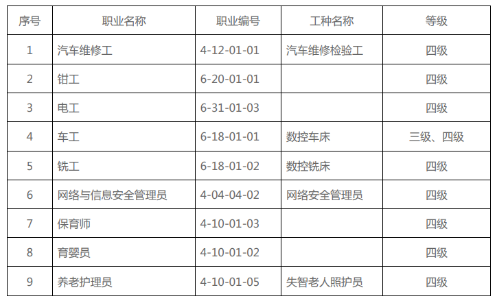 凡符合报考条件(详见附件1:《职业技能等级认定申报条件》)的考生均可根据本人情况,报考相应职业(工种)、级别的考试。