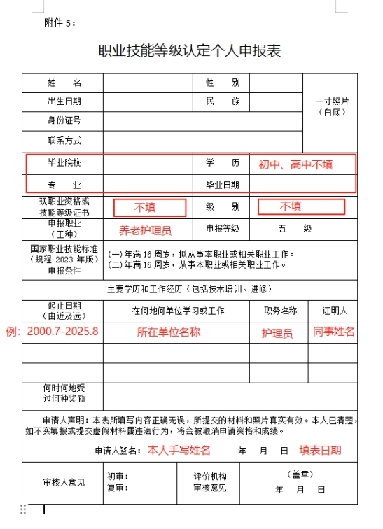 申报职业、等级:按实际填写,图片只是样例