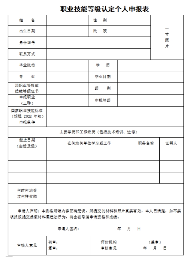 附件2、《职业技能等级认定个人申报请表》;