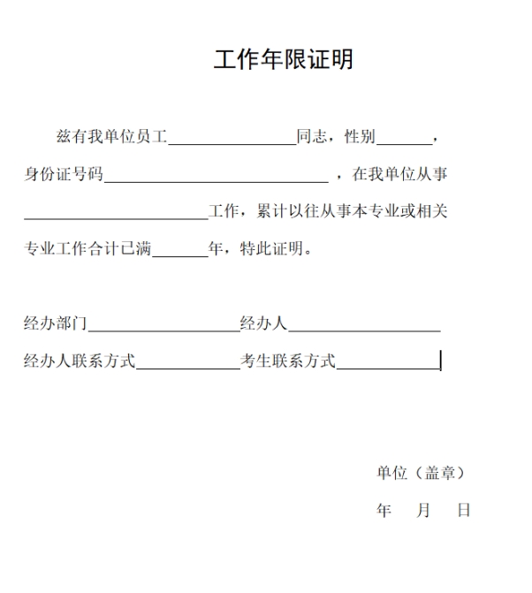 二、工作年限证明样式: