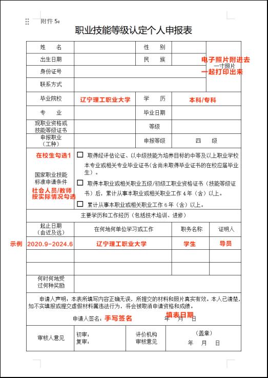 2.2.2、下载附件2 《职业技能等级认定个人申报请表》、附件3《工作年限证明》;按附件4 《报名材料填写样式说明》准备材料并发送至邮箱:421294047@QQ.COM。